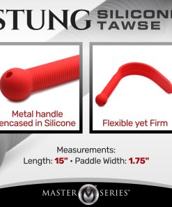 • Premium Silicone: The silicone can be both thuddy (due to the weight) and stingy when made into a strap or tawse. It also allows it to be easily cleaned if you use it in messy play that results in exposure to bodily fluids!