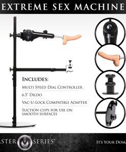 Adjust the angle of the machine up to enjoy unlimited positions. The machine moves up and down the length of the stand for your ideal height and can be angled to hit just the right spot to please you, no matter what position you're in! Use the multi-speed dial to play with various thrusting speeds of up to 195 RPM! The large, round, heavy-duty base has suction-cups to keep it in place and increase stability at all thrusting speeds. This machine was designed to mount to the Obedience Extreme Sex Bench (AF514) for non-stop self-pleasure or for screwing your partner while you enjoy the show! The mounting arm adjusts in length and height to accommodate other sex furniture, including cages, swings, household chairs, benches and more.