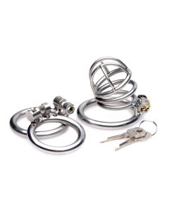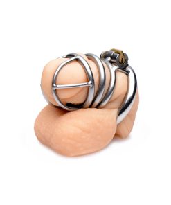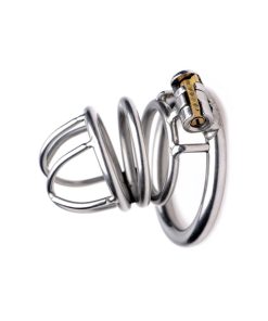 Whether you are putting that penis in timeout or life in prison, this elegant stainless steel chastity cage will assert your control and your partners helplessness. Three different sizes of O-rings are included to find a comfortable or uncomfortable fit, depending on what your slave deserves. The most unique feature of this device, however, is the internal locking system. Insert the key into the brass keyhole and turn to straighten out the lock. The lock can then be inserted into the hinge. With another twist of the key, your slave is left impotent and trapped until you decide to set them free... if that day ever comes!