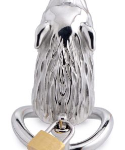 This Tiger Inspired Chastity Cage offers a kinky feline twist to your chastity games! Constructed with smooth, solid stainless steel for a relentless caged feeling, bulging your subs balls and covering their shaft in the tiger shaped tunnel. The open tip cage allows your sub to do their necessaries when locked up, perfect for extended chastity sessions!