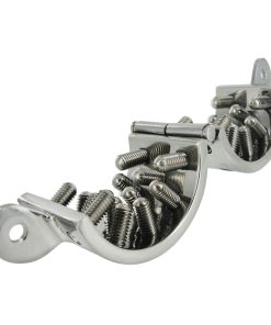 This is a heavy-duty stainless steel CBT device that is perforated with 28 holes through which adjustable screw points can be threaded to put the pressure on your sub. The sturdy construction means that this ring offers no quarter to your flesh puppet, and as the lock slides into place they will become utterly at your mercy. The screw points have blunted ends to avoid piercing sensitive flesh while still pressing in on their package. The points are fully adjustable with the included hex key: start with them withdrawn all the way, then put Toms Spikes to work as you begin to tighten them up to inflict as little or as much discipline as you desire. They can even be removed entirely and becomes a smooth steel cock ring or ball stretcher.