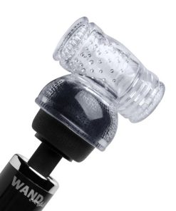 Why let the ladies have all the fun? Wand Massagers are an incredibly powerful way to enjoy hot stimulation. With our exciting Hummingbird Attachment, you get a tight grip on your cock while you stroke, powered by a serious motor that will have you on your knees in ecstasy. The open ended tube is made of firm yet stretchy TPR, studded internally with exciting texture elements. The material transfers the strong vibration from the wand to the toy to your cock! When you are ready to blow your load, the open ended design means that clean up is fast and easy. The 8 speed, 8 function massager is rechargeable, so that means you are not tethered to a cord or an outlet. Enjoy alone or with a partner.