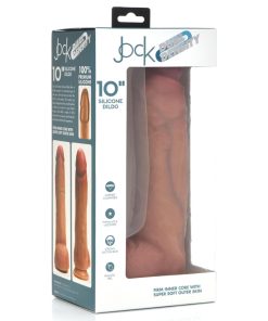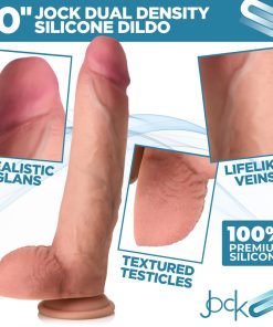 Enjoy the length of this extra sexy dildo with a little extra something to offer; a dual density design that offers a firm inner core and a soft outer skin giving you ultra-sexy, realistic glide and feel! The outer layer is soft and stretchy allowing it to slightly glide over the core, and the firm core gives you something to squeeze on while it's inside! At the base is a super strong suction cup that you can place on any flat surface for hands-free riding. The base is also compatible with most strapon harnesses so you can enjoy pegging play with a partner! Designed to look realistic with a round, pinkish head, veins, wrinkled balls and skin-tone colors, it enhances the fantasy for realistic scenes and self-pleasure sessions! Satisfy yourself worry-free with this body-safe, silicone dong; it's latex-free, phthalate-free and silky smooth to touch. After play, wash with warm water and mild soap, then spray with a toy cleaner and pat dry. Store in a cool, dark place separate from other silicone toys.