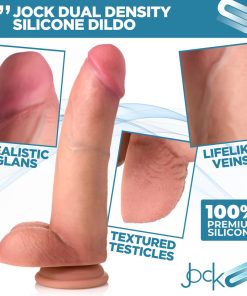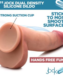This sexy dildo with balls has something new to offer; a dual density design that offers a firm inner core and a soft outer skin giving you ultra-sexy, realistic glide and feel! The outer layer is soft and stretchy allowing it to slightly glide over the core, and the firm core gives you something to squeeze on while it's inside! At the base is a super strong suction cup that you can place on any flat surface for hands-free riding. The base is also compatible with most strapon harnesses so you can enjoy pegging play with a partner! Designed to look realistic with a round, pinkish head, veins, wrinkled balls and skin-tone colors, it enhances the fantasy for realistic scenes and self-pleasure sessions! Satisfy yourself worry-free with this body-safe, silicone dong; it's latex-free, phthalate-free and silky smooth to touch. After play, wash with warm water and mild soap, then spray with a toy cleaner and pat dry. Store in a cool, dark place separate from other silicone toys.