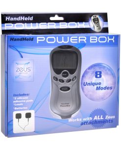 The Zeus Handheld Power Box is a great entry-level unit for those exploring the pleasures of e-stim. Portable and simple to operate, this power box features 8 unique modes of current and 15 different levels of intensity. Two of our black premium silicone electro pads are included to get you started, and the convenient storage tray is the perfect place to stick those pads between uses to keep the conductive surfaces clean and ready to go. The Handheld Power Box is compatible with all Zeus Electrosex attachments so you can branch out and experiment. Batteries are included for immediate use.
